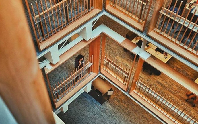 同时,自习区的座位宽敞明亮,有多处开放式学习空间,而图书馆一层入口处还特别设立了一个咖啡站——Flipside Café,学生可在那里享受片刻的休闲时光。